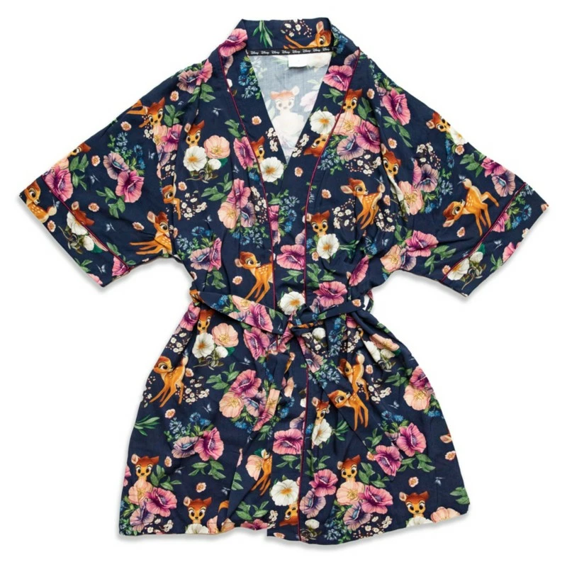 Lounge in comfort with this Bambi kimono! This all over print features Bambi peeking out from among pretty florals.