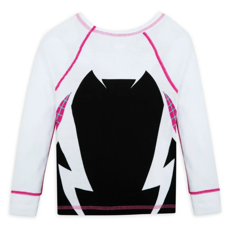 A good night’s sleep will transform any average kid into a mighty Marvel Super Hero when wearing this soft pajama set featuring an allover Ghost Spider (a.k.a. Spider-Gwen) costume print.